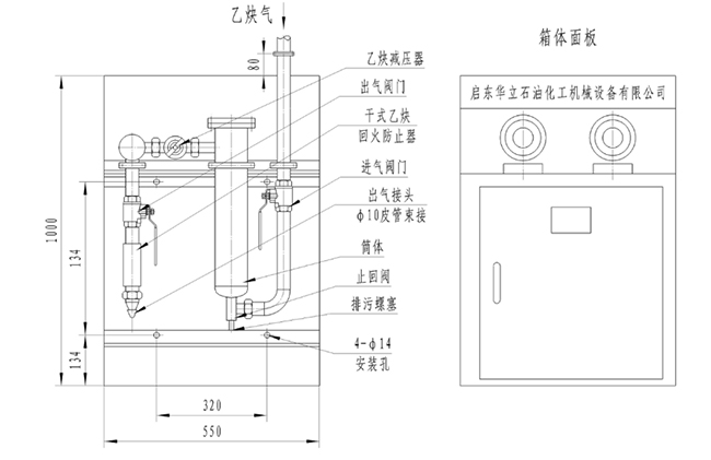 2、原有乙炔氣點閥箱設計進氣壓力為0.15MPa,HL系列乙炔氣點閥箱設計進氣壓力為0.15—0.5MPa,可在中、高壓乙炔氣管路中應用。