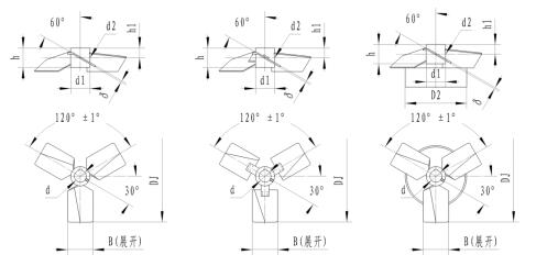 性能和上面三窄葉旋槳式相同,但寬葉其排出流量大些,輸入功率也大些. | ||